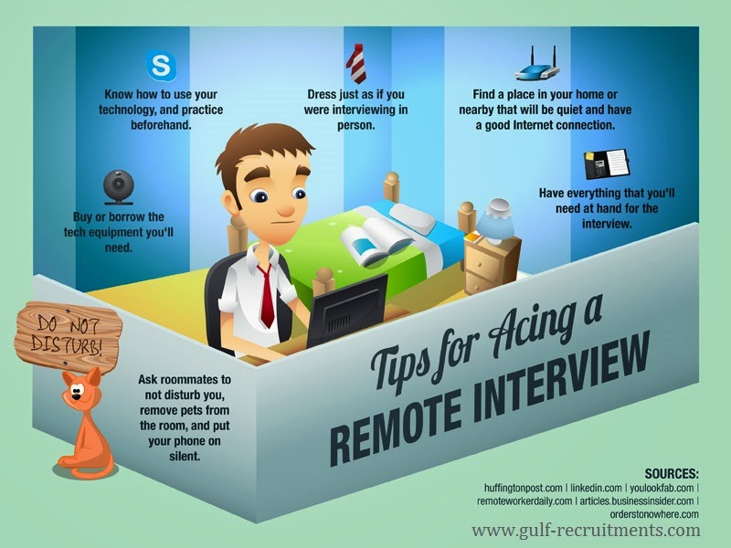 Just because you’re not going into the office doesn’t mean you shouldn’t look businesslike and professional. When doing a remote interview, even from your own home after work hours, you still need to dress just as you would if you were interviewing in person.
